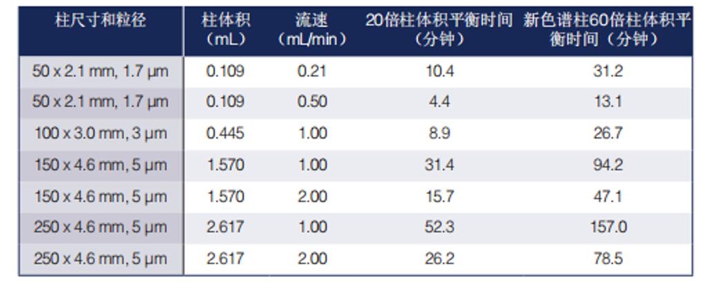 ACE 100 ?多孔柱達到20和60倍柱體積平衡所需的時間表