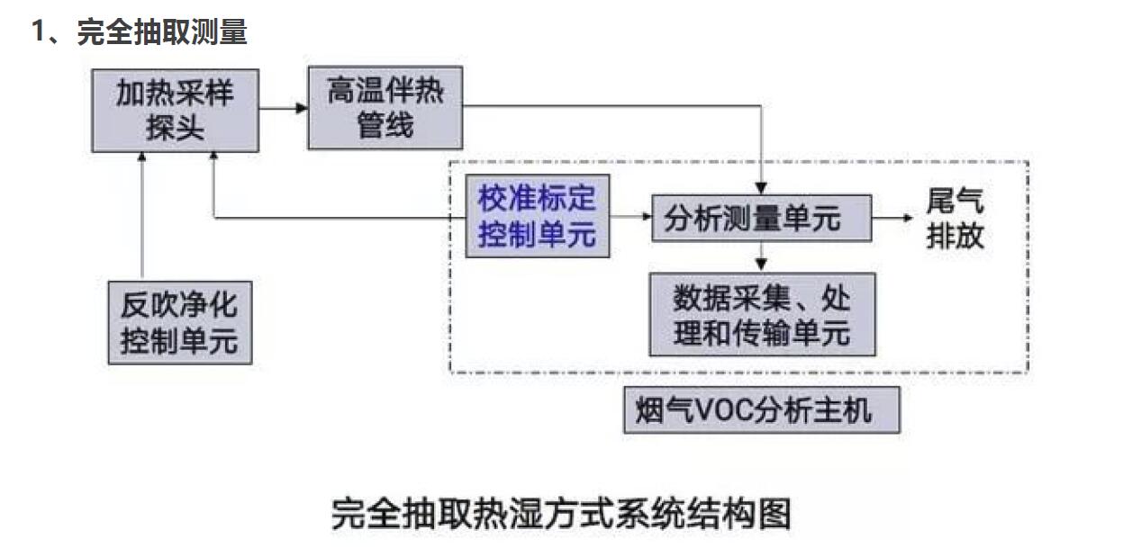目前,根據(jù)采樣和測(cè)量方式的不同,VOCs檢測(cè)系統(tǒng)可以劃分為完全抽取測(cè)量、稀釋抽取測(cè)量和直接測(cè)量三種。