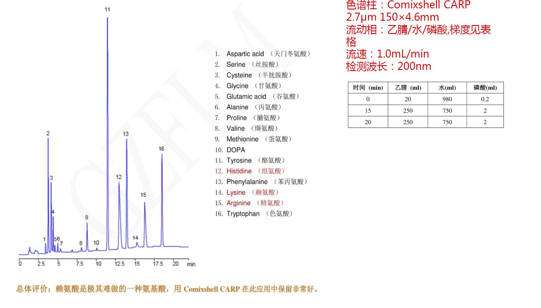 Comixsil CARP智能柱對16種非衍生氨基酸的分析-UV