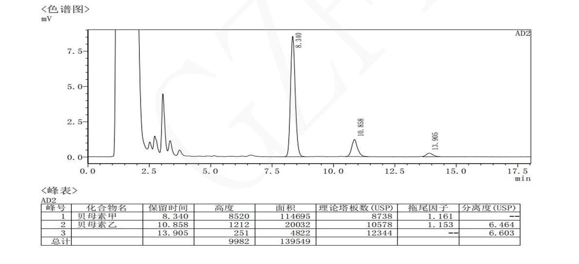 菲羅門液相色譜柱對浙貝母中貝母素甲與貝母素乙的檢測