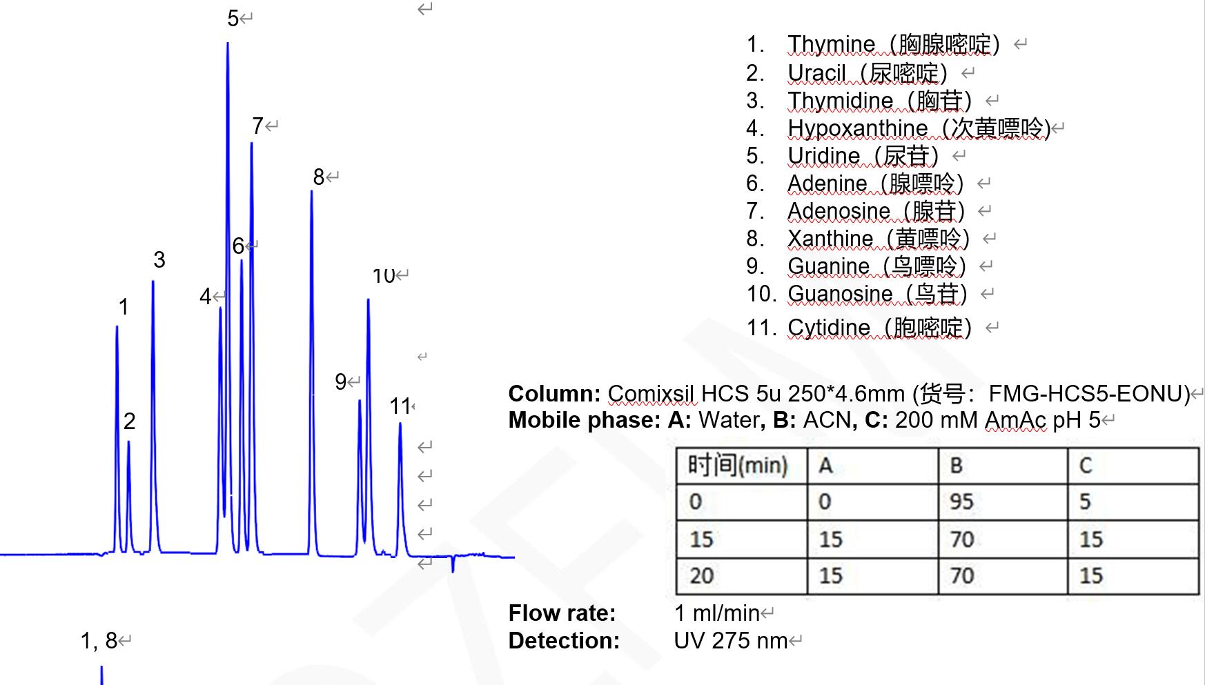 Comixsil HCS與Comixsil RP-100分析核酸堿基與核苷(MS匹配)