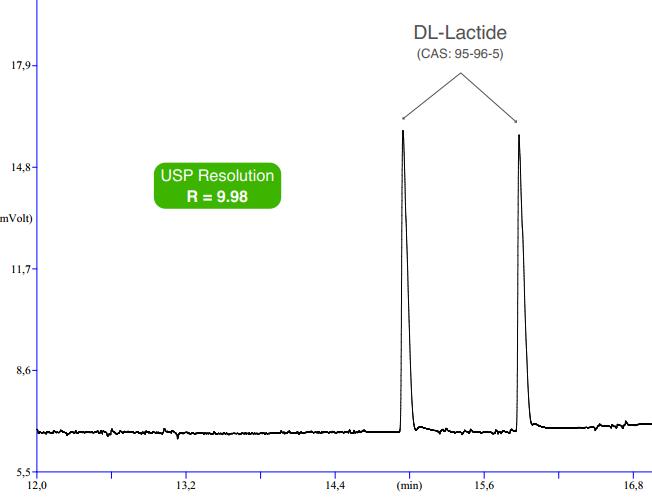 色譜柱2的方法也完全符合國家以下標準: A.GB1886.173-2016關于食品添加劑乳酸D,L異構體的檢測用柱要求 B.GB25555-2010 關于食品添加劑乳酸鈣的D,L異構體的檢測用柱要求