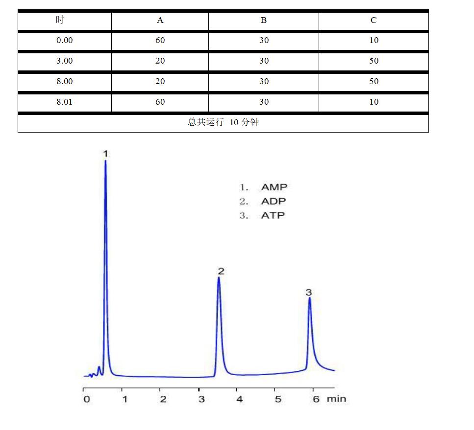 Comixsil HCS 與 HAX 關(guān)于 AMP ADP ATP 的 HPLC 分析研究 App ID: FLM-C240010 色譜柱:Comixsil HCS 3u 100*3.0mm (貨號: FMD-HCS3-YONU) 流速:0.6 mL/min 檢測波 :275nm 流動(dòng)相:A:水 B:乙腈 C:200mM 乙酸 (pH5.5)