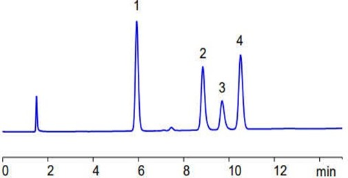 App ID: FLM-P250001 Primesil A 關(guān)于水楊酸及氨基水楊酸位置異構(gòu)體的分析 方法:自定 色譜柱: Primesil A 3u 150*3.0mm (貨號(hào):A-3015003) 流速:0.6 mL/min 柱溫:35℃ 檢測(cè)波長(zhǎng):232nm 流動(dòng)相: